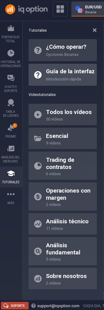 ¿Qué es IQ Option? Es una plataforma de trading disponible para traders en México que desean acceder a una variedad de mercados financieros con una sola cuenta. Esto es útil para los traders que quieren invertir en varios mercados, pero encuentran difícil o tardado manejar diferentes brókers. La plataforma también ofrece requisitos mínimos y una gama de herramientas avanzadas de gráficos, asistencia y formación multilingüe 24/7, e incluso un proceso de iniciación optimizado, para que puedas abrir una cuenta y operar en cuestión de minutos.