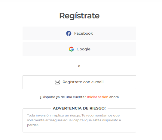 Puedes registrarte en el sitio web de IQ Option o descargando la aplicación desde Google Play o la App Store en tu móvil. Haz clic en “Registro” e ingresa tu nombre completo, correo electrónico y una contraseña. Si lo prefieres, puedes acelerar el proceso registrándote con tu cuenta de Google o Facebook. Esto vincula tu perfil de trading con esas credenciales para un acceso más rápido.